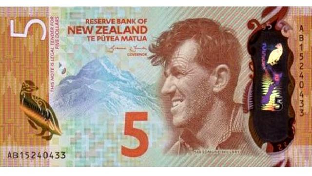 Mata Uang di Dunia No. Mata uang kode alfabet tiga digit untuk setiap mata uang yang ditetapkan oleh standar ISO 4217. Dinilai menakjubkan oleh IBNS uang 5 dolar tersebut berwarna oranye dan coklat dengan fitur gambar pendaki gunung New Zealand Sir Edmund Hillary dan Mount Cook Aoraki di satu sisi.